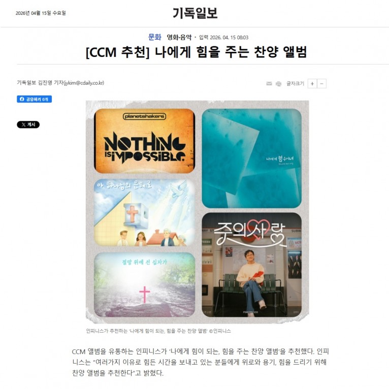 뮤직타임 [기획기사] CCM 추천, 나에게 힘을 주는 찬양 앨범(기독일보)