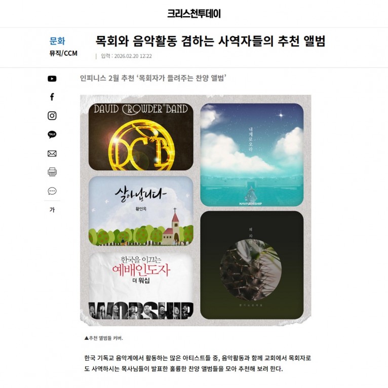 뮤직타임 [기획기사] 목회와 음악활동 겸하는 사역자들의 추천 앨범(크리스천투데이)